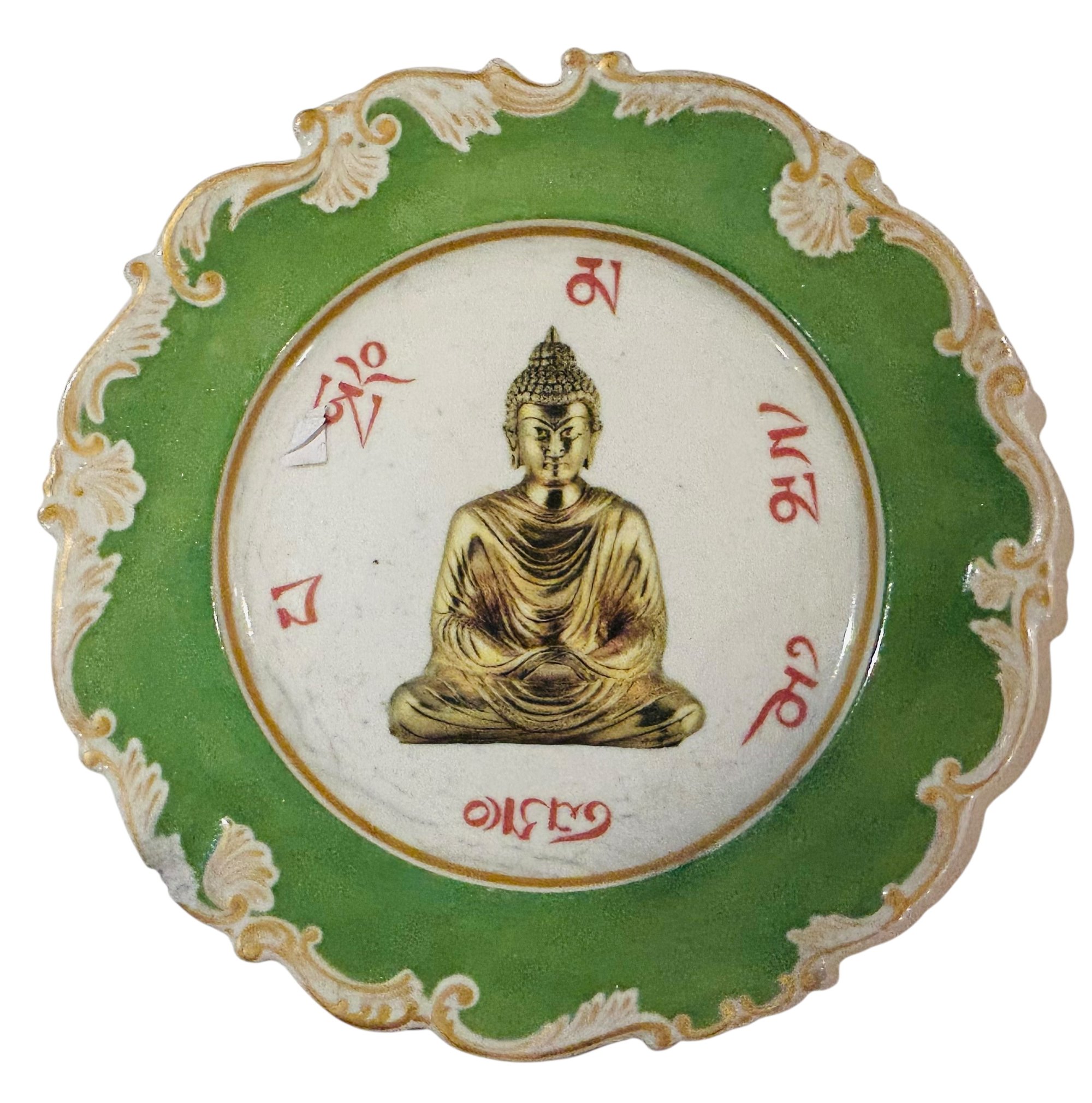 Green and Gold trim Plate with Buddha Print
